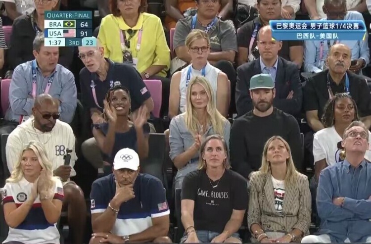 贵宾!NBA总裁亚当-萧华现场观战美国男篮对阵巴西