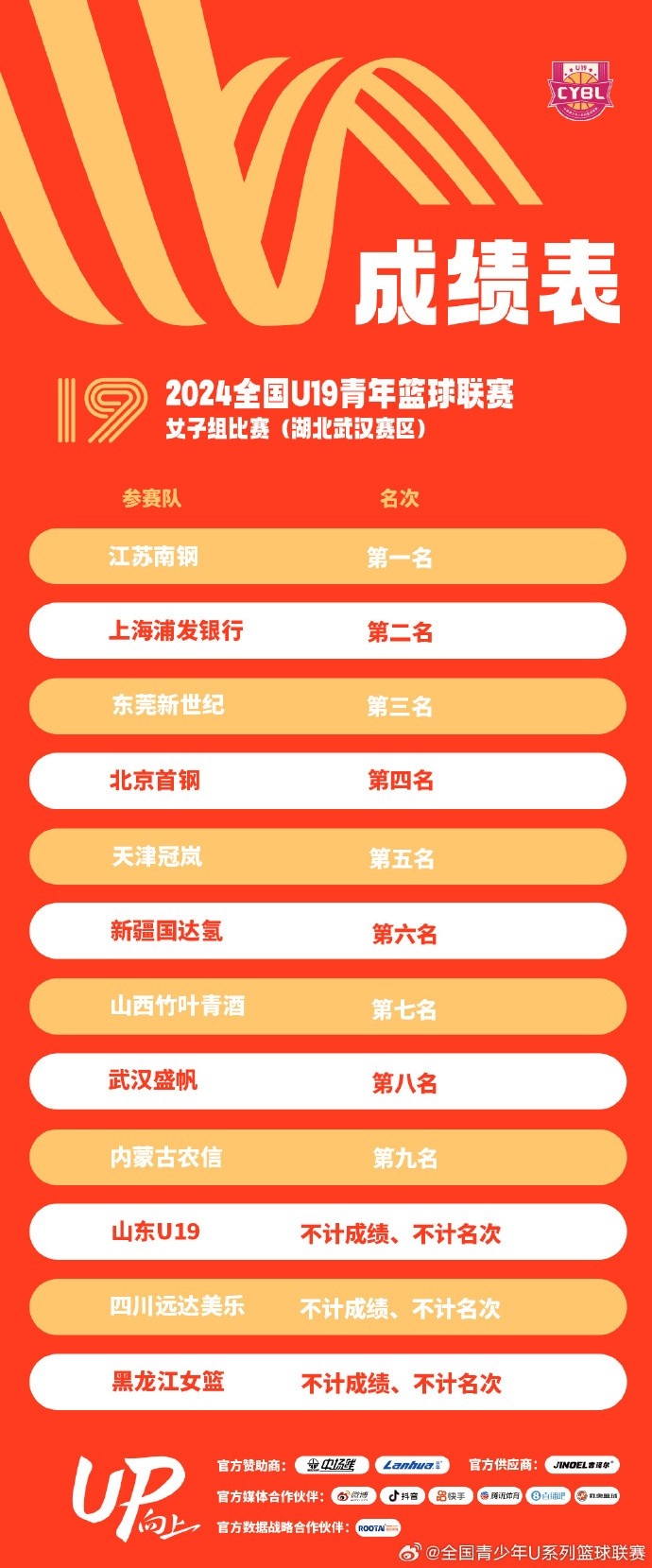 8月7日,2024年全国U19青年篮球联赛女子组比赛在湖北武汉落幕。总成绩排名如下: