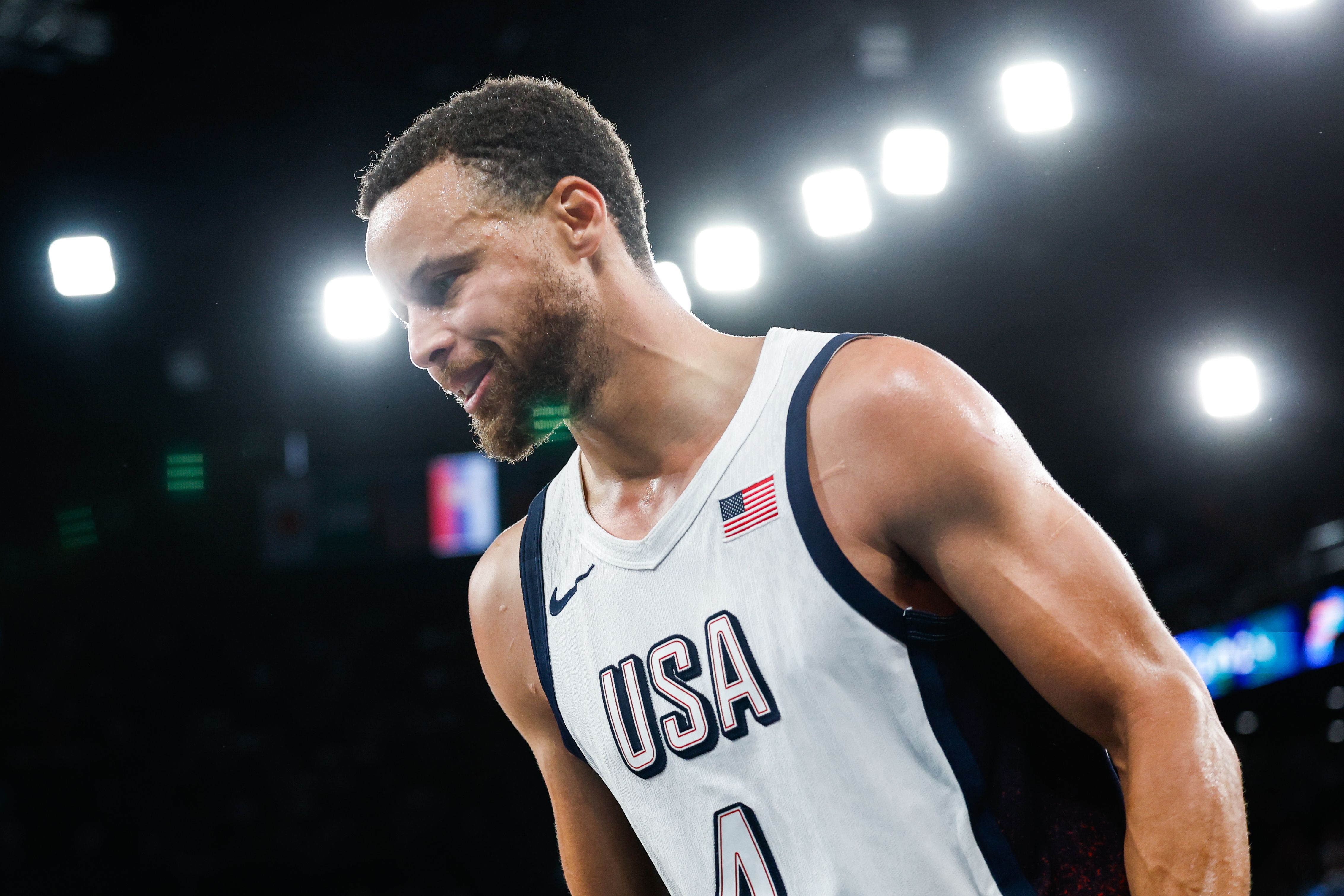 本场比赛,美国队几乎全场落后,库里撑住了上半场,末节三分命中反超比分,最后时刻两罚锁定胜局。