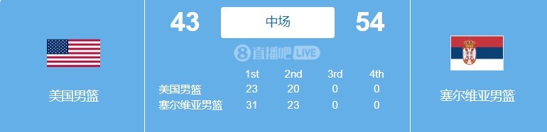 库里半场20分!美国男篮落后塞尔维亚11分!