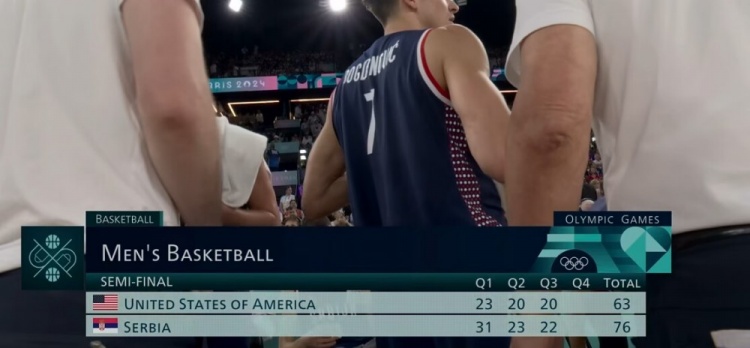 8月9日讯 奥运男篮半决赛,塞尔维亚三节打完76-63领先美国。