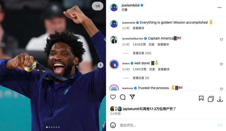 成功夺金!恩比德晒照:一切都是金色的 任务完成