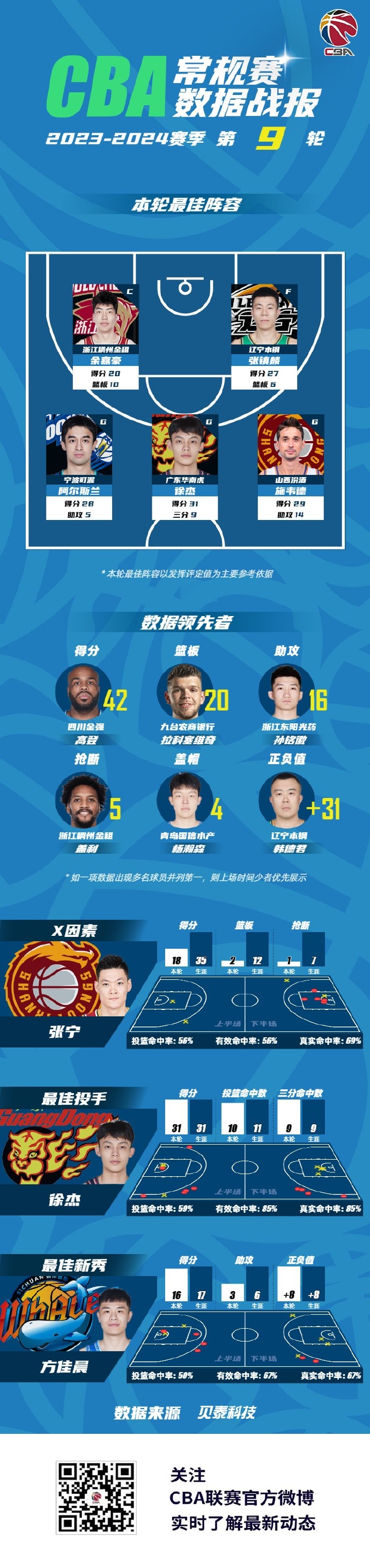 第9轮X因素球员由来自山西汾酒的张宁获得(18分全部来自第四节);