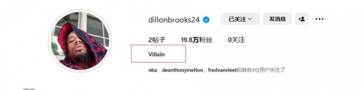 恶但不要脏!狄龙-布鲁克斯将个人INS备注改为“恶棍”