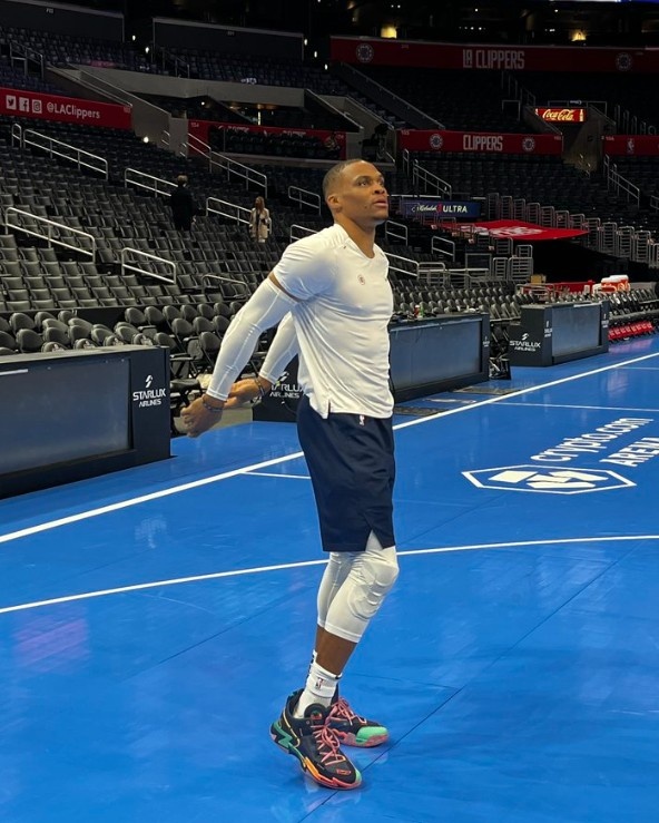 11月18日讯 NBA季中锦标赛,快船将在主场迎战火箭。本场比赛,威少预计将替补出战。据队记Joey Linn报道,威少今天也是第一个来球场训练的球员。