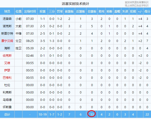 第一节还剩3分多钟 活塞篮板13-1骑士 骑士双塔篮板挂零