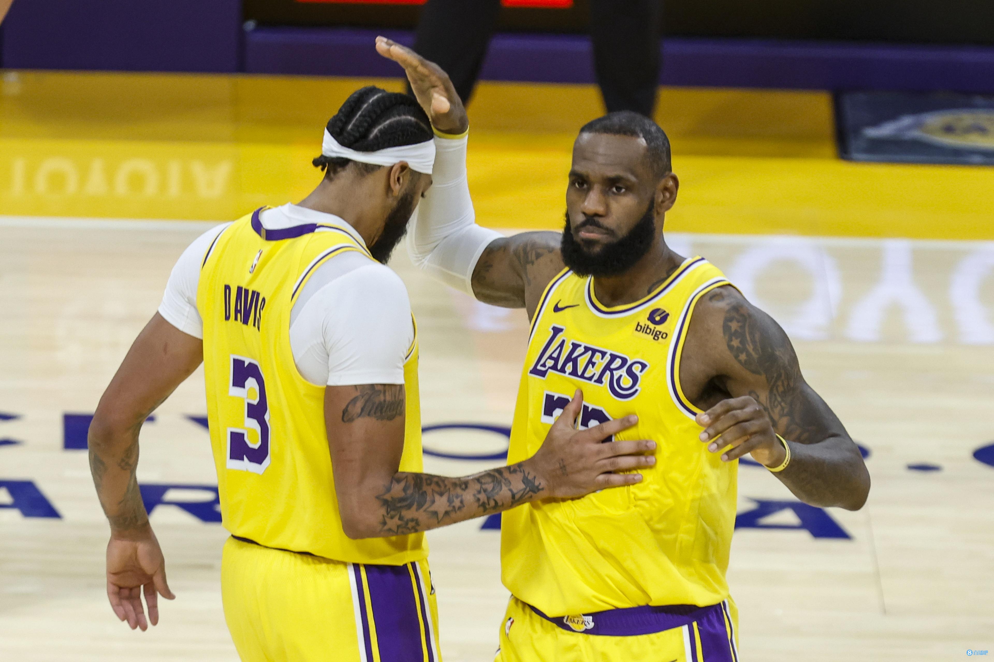 赛前湖人官方更新伤病名单,詹姆斯本场比赛(左小腿挫伤)出战成疑,浓眉(内收肌、髋部伤势)本场比赛大概率出战。
