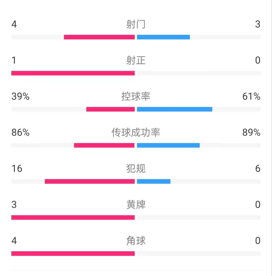 控球率:39%vs61%