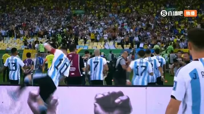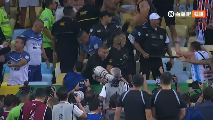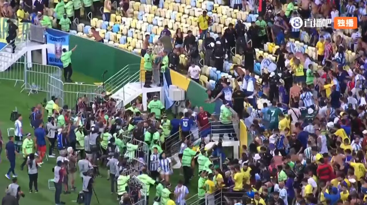 11月22日讯 南美区世预赛,巴西主场对阵阿根廷。比赛还未开始,看台上的球迷已经打成一片!现场安保上前维持秩序,双方球员也上前劝阻!