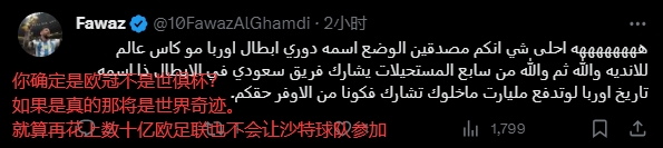 马卡主编何塞-菲利克斯连线沙特媒体SBA sport的节目,他爆料欧足联在与沙特足协商谈沙特球队参加欧冠的事宜。而在这篇报道的评论区,大部分球迷也表达了对此