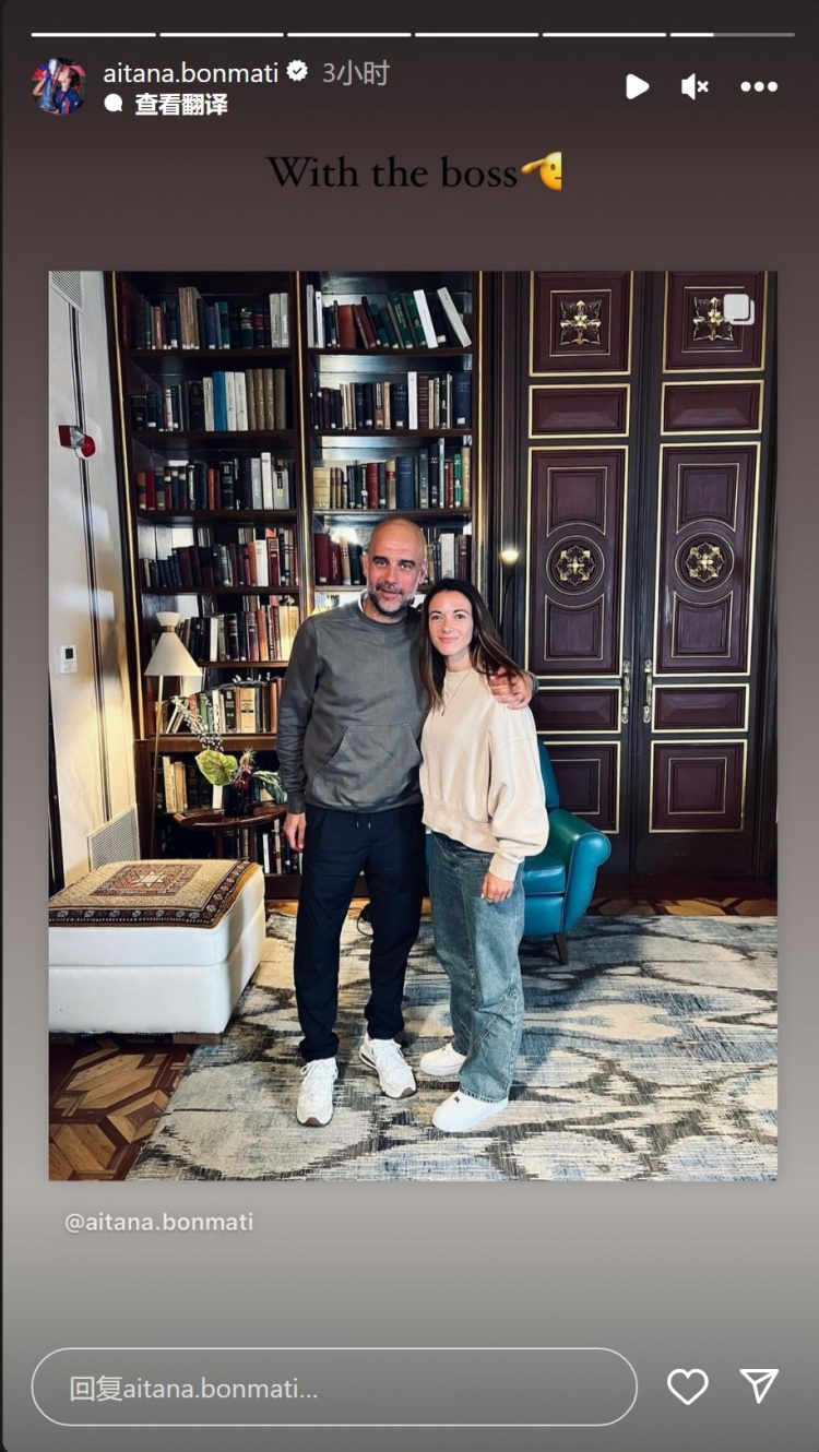 11月24日讯 巴萨女足球员、金球奖得主邦马蒂更新社媒动态,晒出与瓜迪奥拉的合照。