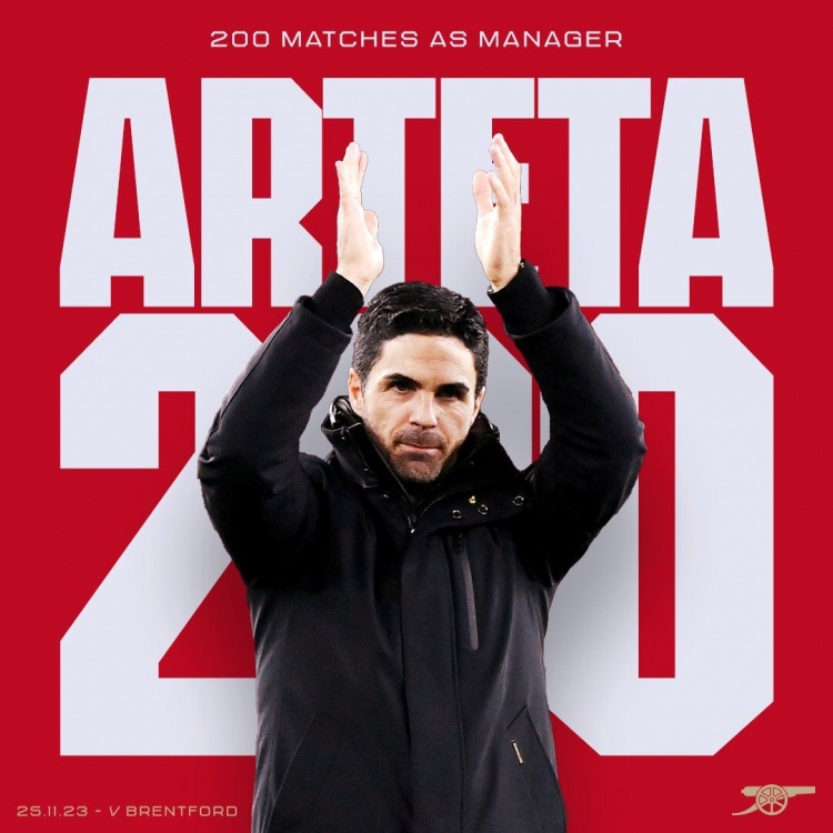 本场比赛也标志着阿尔特塔执教阿森纳的第200场比赛。阿森纳官方晒出海报,并写道:“Boss的特殊里程碑。”