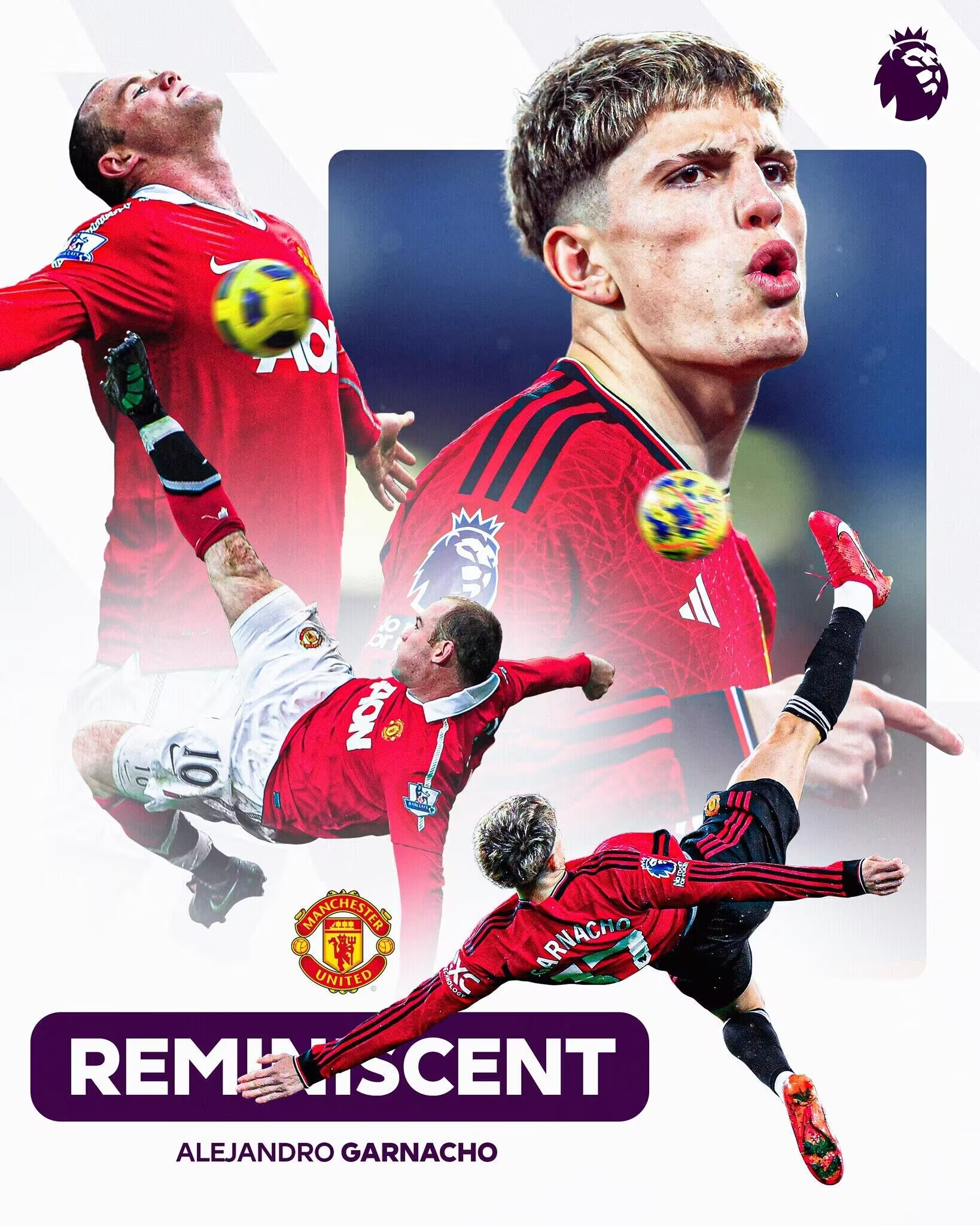 官方认证!英超官方晒加纳乔&鲁尼倒钩海报:英超历史伟大进球
