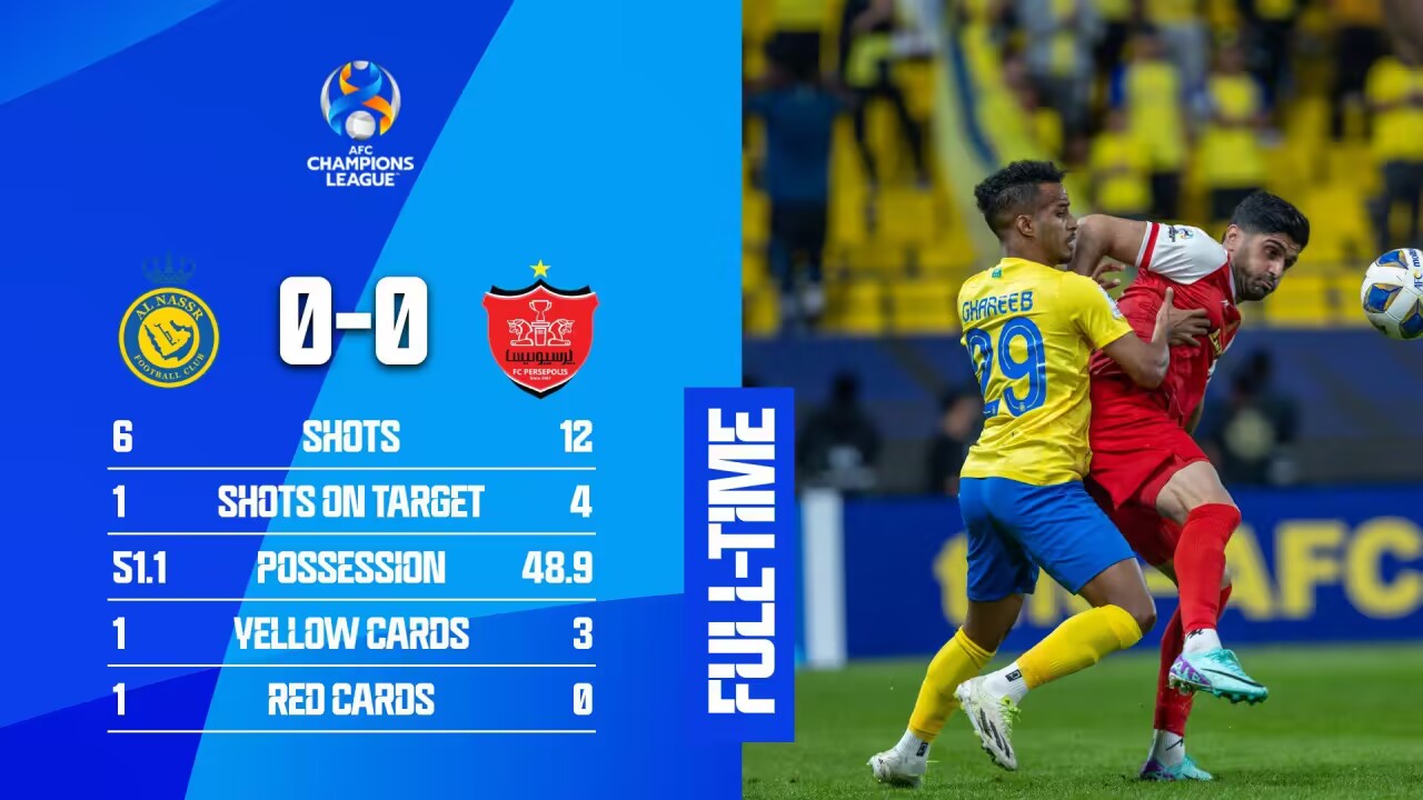 亚冠-十人利雅得胜利0-0波斯波利斯头名出线 C罗下半场伤退