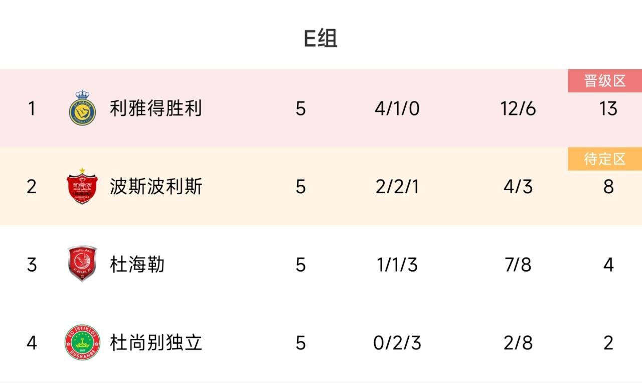 目前,利雅得胜利4胜1平积13分,锁定小组头名。