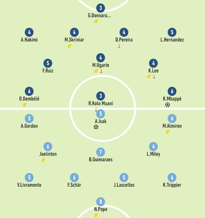 队报评分:巴黎全队平均4.5分,姆巴佩、登贝莱全队最高6分