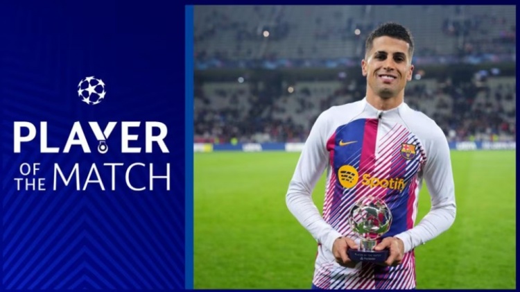 完美表现!坎塞洛当选巴萨2-1波尔图全场最佳球员
