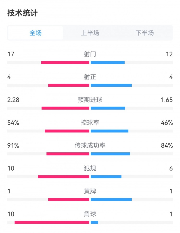 控球率54%-46%