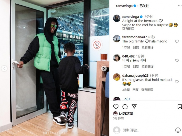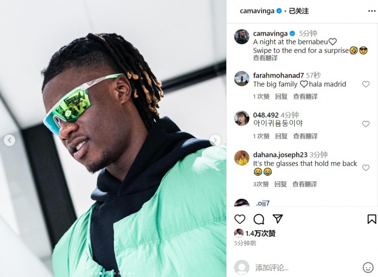 卡马文加社媒庆祝胜利:美妙的伯纳乌之夜,划到最后有惊喜