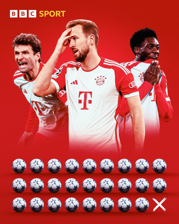 与此同时,拜仁在欧冠主场连续进球的场次纪录也被终结,这一数字定格在了26场。