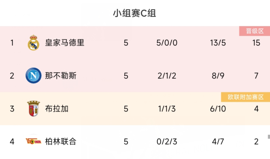 C组皇马已出线,那不勒斯、布拉加均有机会出线。末轮那两队直接对话,首回合那不勒斯2-1布拉加。