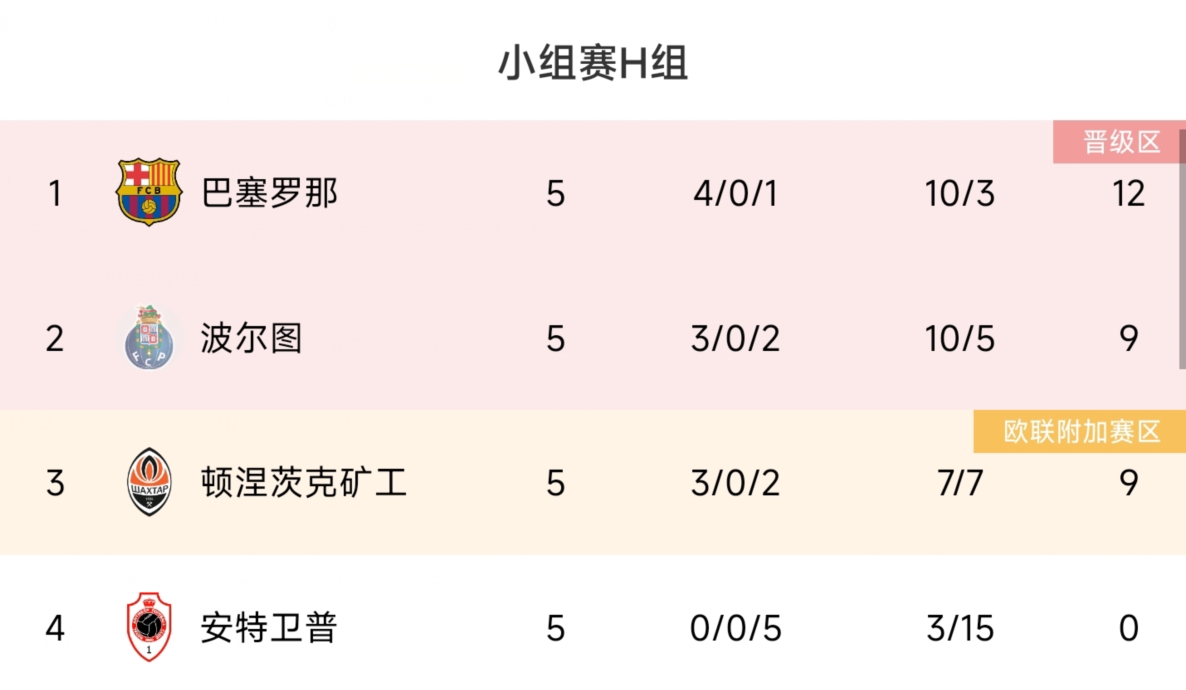 H组巴萨已出线,波尔图、矿工均有机会,末轮两队直接对话。