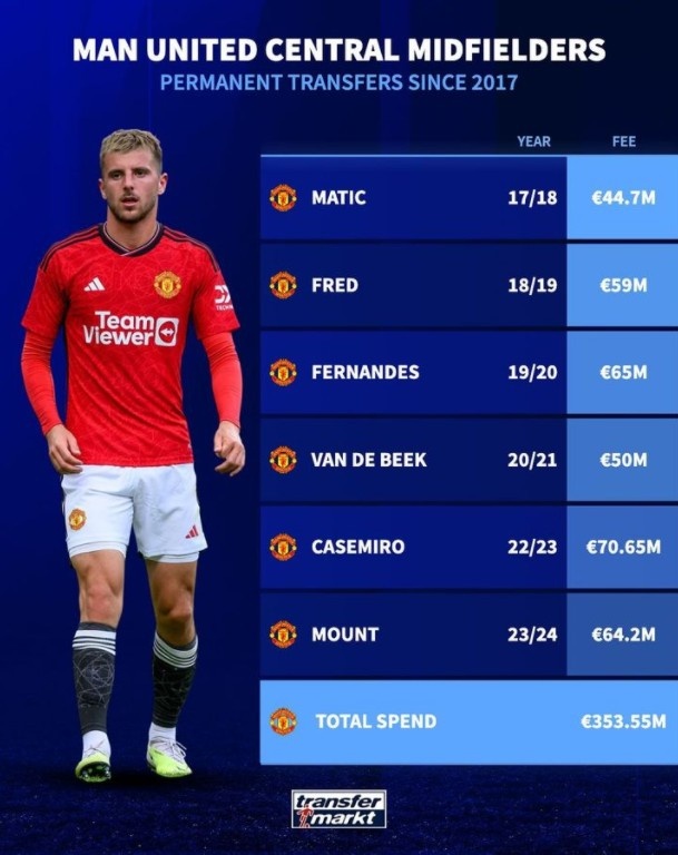 德转列曼联2017年以来中场引援:共花费超3.5亿欧,卡塞米罗最贵