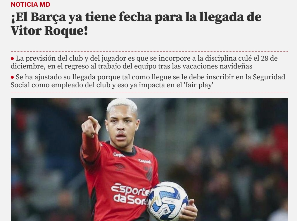 西媒表示,巴萨今年夏窗签下的18岁巴西前锋罗克预计在12月28日左右正式加入球队,而那时也是圣诞节后巴萨恢复训练的日子。