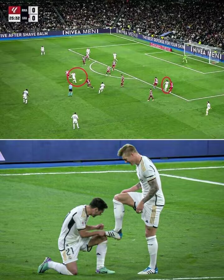 12月3日讯 西甲联赛第15轮,皇马主场2-0击败格拉纳达登顶积分榜。上半场,克罗斯潇洒直塞助攻迪亚斯首开纪录↓回放↓进球后的迪亚斯奔向克罗斯为他擦拭战靴↓
