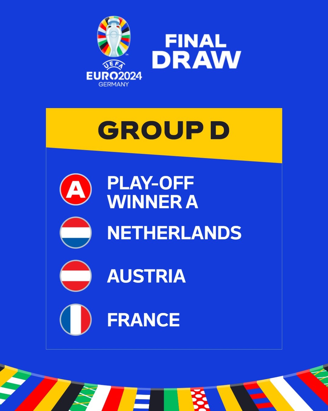 欧洲杯D组:附加赛A组胜者、荷兰、奥地利、法国