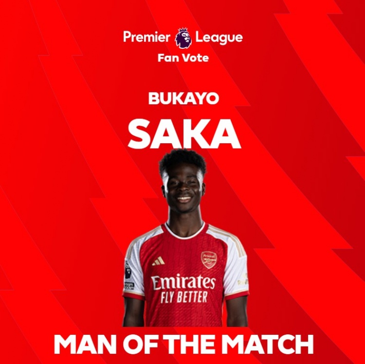 12月3日讯 英超官方消息,萨卡当选阿森纳2-1狼队全场最佳球员。英超第14轮,阿森纳2-1击败狼队,萨卡2次射正打入1球,他同时还送出4次关键传球和2次成功过人。在