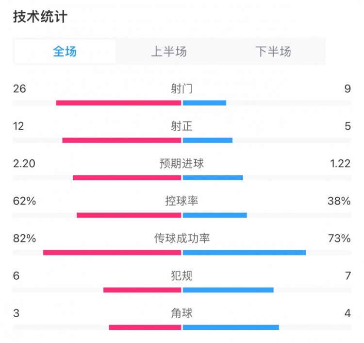 控球率:62%-38%