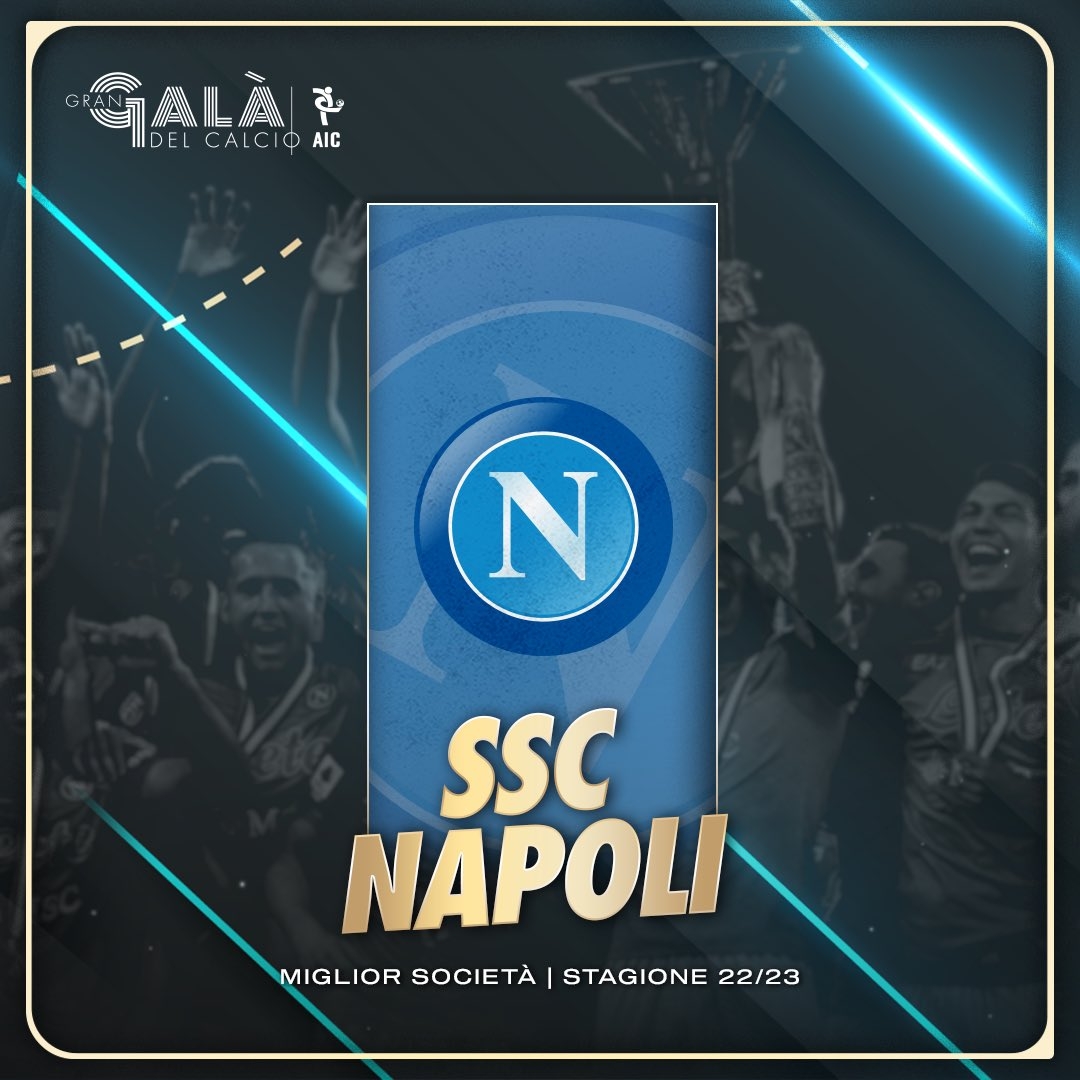 12月5日讯 意大利球员协会(AIC)举办的年度最佳大奖(Gran Gala del Calcio)颁奖典礼,那不勒斯当选22/23赛季意甲最佳俱乐部。