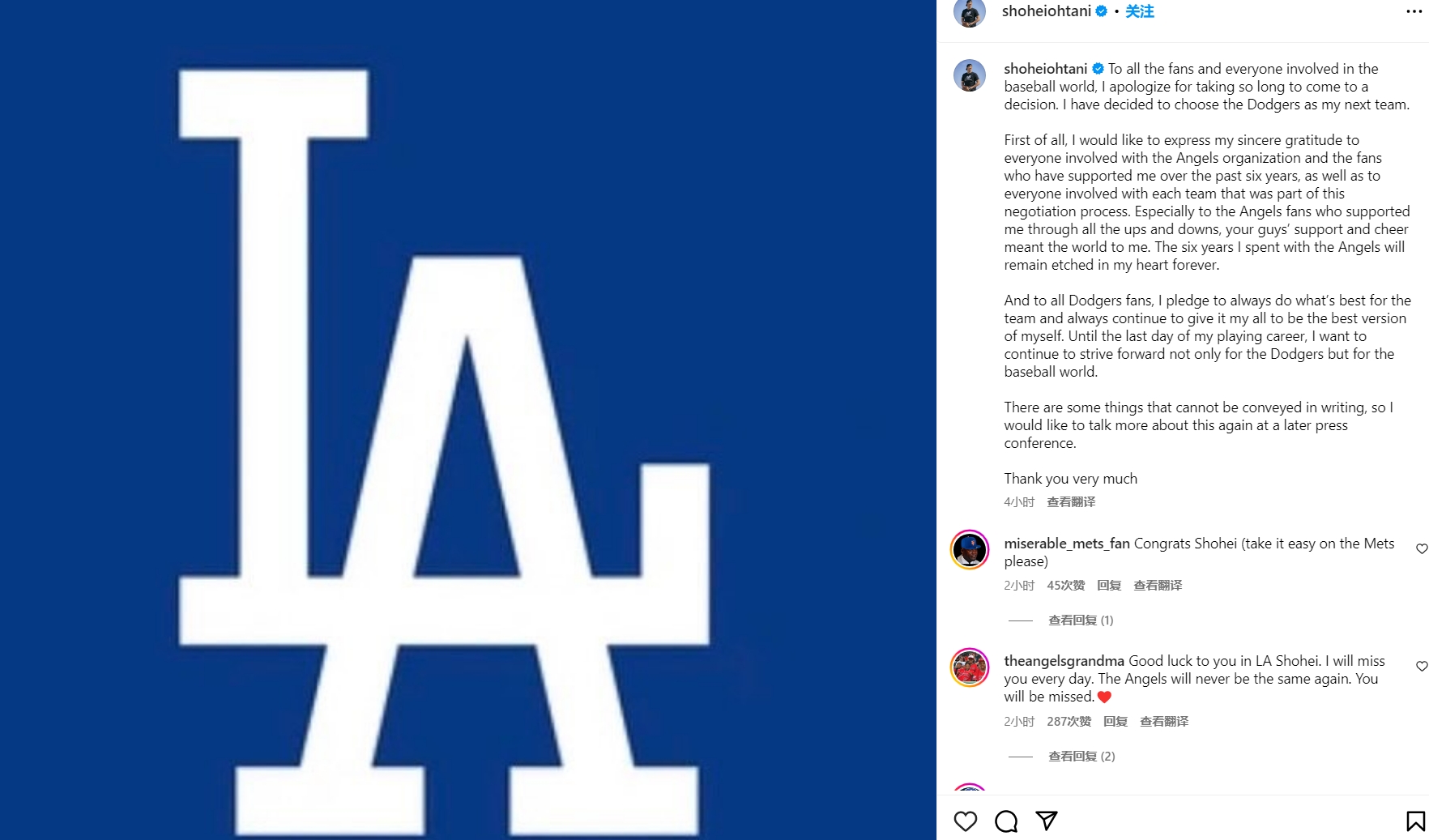 震惊世界!大谷翔平10年7亿美元加盟道奇,超梅西与巴萨4年5.5亿欧