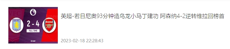 12月10日讯 英超第16轮,维拉主场1-0击败阿森纳,英超主场15连胜创队史纪录。维拉跨赛季达成英超主场15连胜,上一次英超主场输球正是输给阿森纳,比分为2-4。