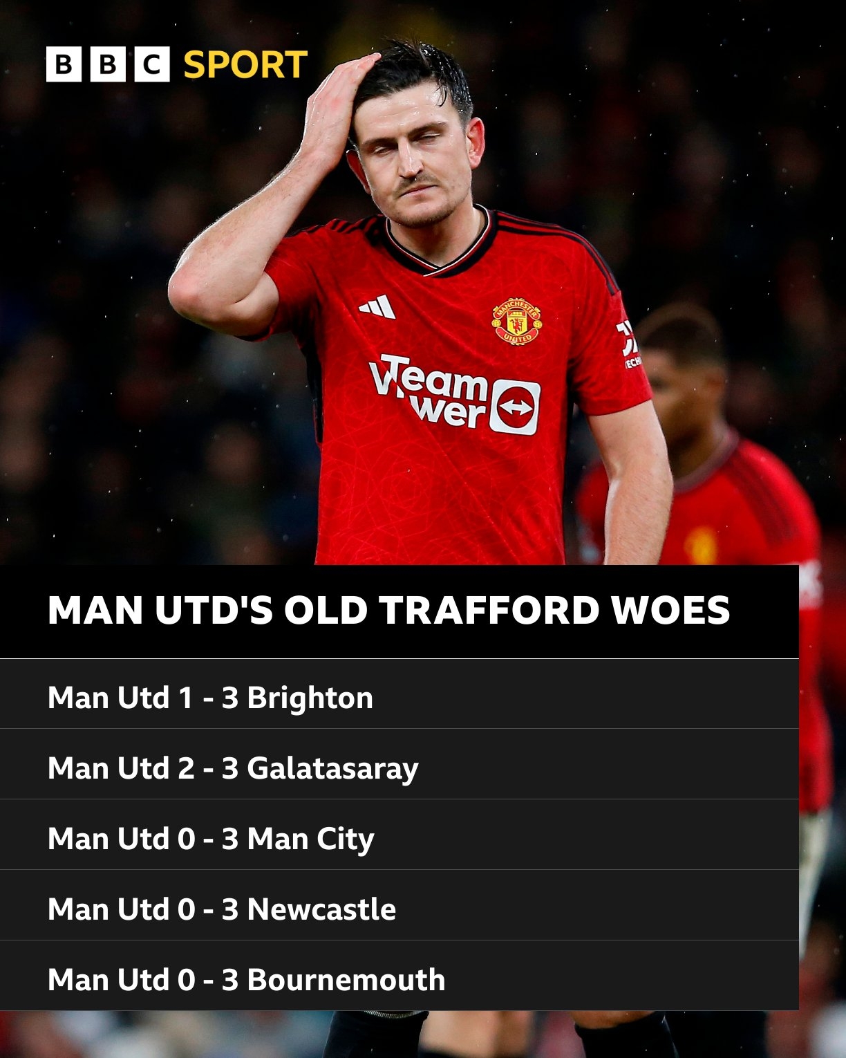 据BBC统计,曼联本赛季已经5次在老特拉福德丢3球,其中3次被对手零封。