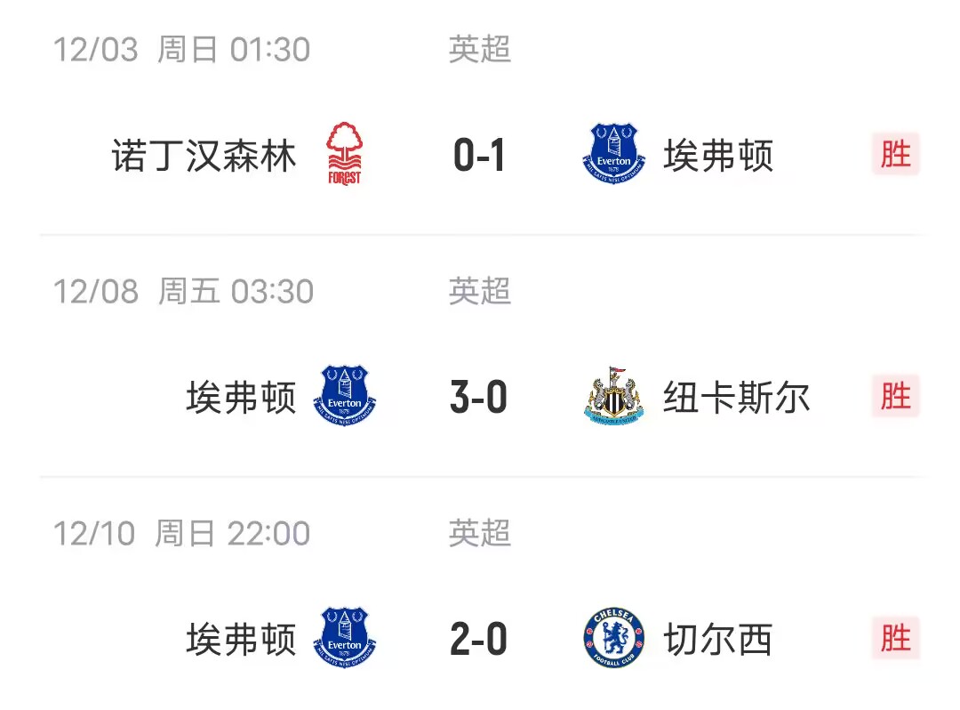 12月11日讯 本轮英超,埃弗顿主场2-0击败切尔西,豪取三连胜!此前因财务违规被罚十分的埃弗顿积分来到13分,排名英超第十七。