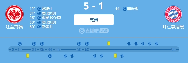 12月11日讯 德甲第14轮,拜仁1-5惨败于法兰克福;英超第16轮,切尔西0-2埃弗顿。