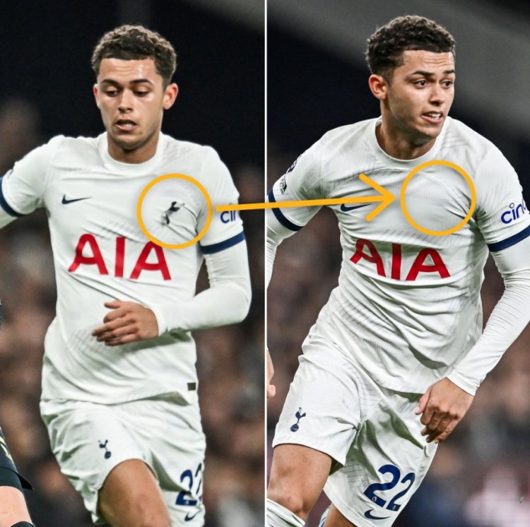 啊这...约翰逊球衣上的热刺队徽在比赛中掉落