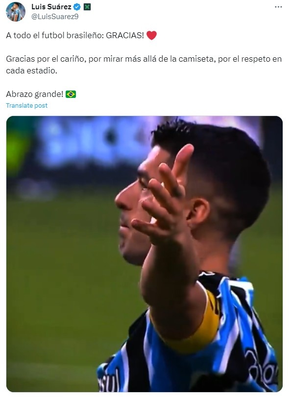 苏牙更新社媒:致谢巴西足球,感谢每个球场展现出的尊重