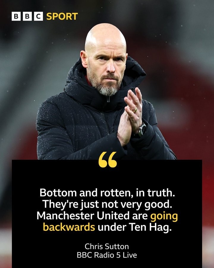 前英超球星、BBC评论员克里斯-萨顿评价道:“排名垫底,表现稀烂,曼联真的不太好,他们在滕哈赫带领下倒退。”