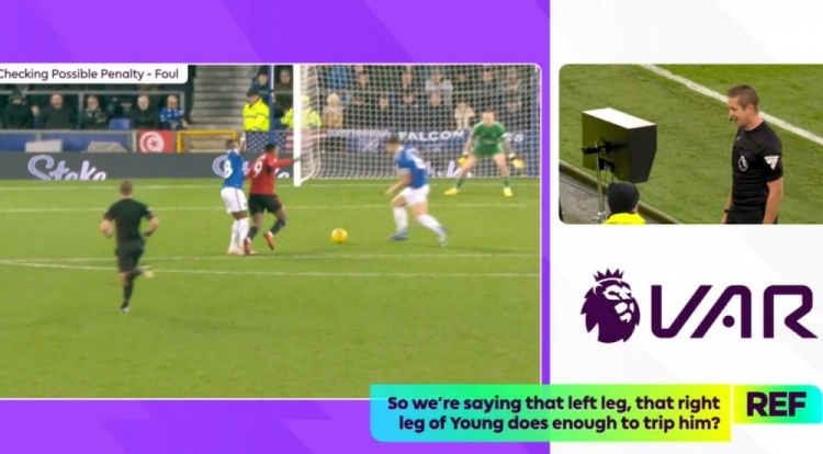 马夏尔假摔黄牌改点球?韦伯确认:阿什利-扬没收腿,VAR的改判正确