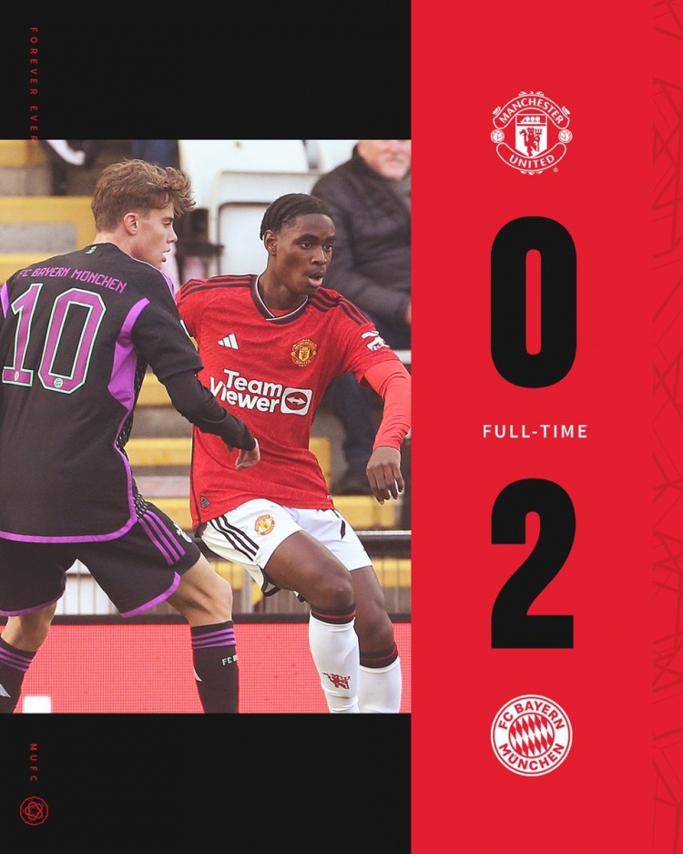 青年欧冠-曼联0-2拜仁,1胜1平4负小组垫底出局