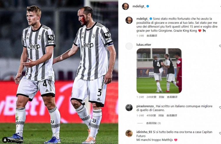 12月13日讯 现年39岁的基耶利尼宣布退役,结束23年球员生涯。德里赫特发文致敬了基耶利尼。