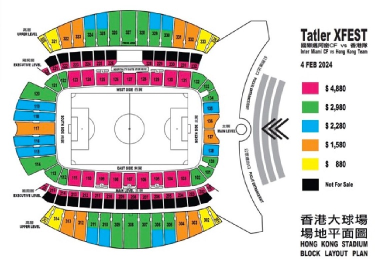 梅西&迈阿密中国香港行比赛票价分为5档:880港币、1580港币、2280港币、2980港币以及4880港币。
