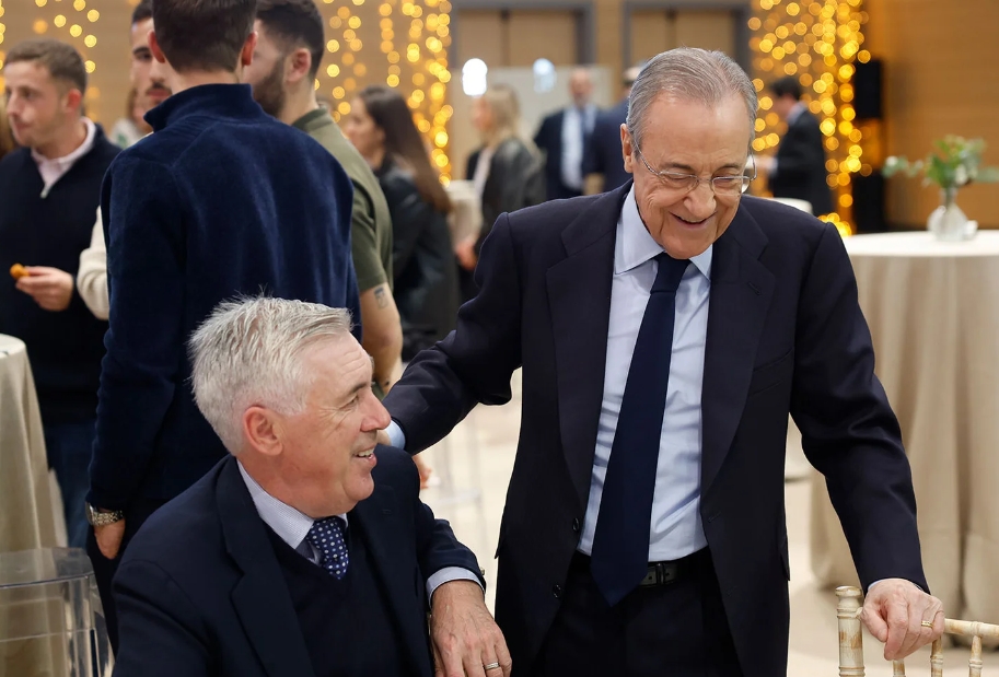 皇马球员贝林厄姆、维尼修斯、卡马文加等球员都参加了本次圣诞宴会,主席弗洛伦蒂诺和皇马主帅安切洛、维尼修斯、库尔图瓦等球员都进行了友好交谈。