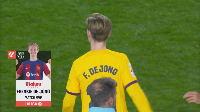 12月17日讯 巴萨1-1战平瓦伦西亚,德容当选西甲官方全场最佳。