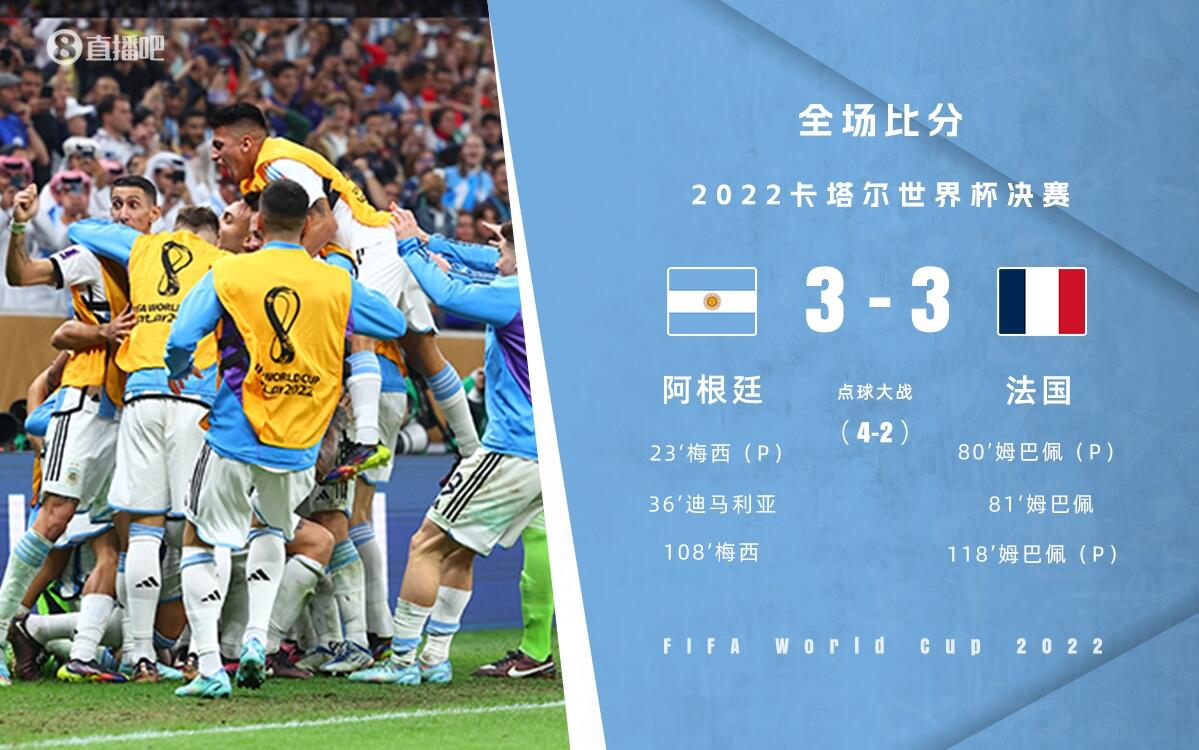 最终,阿根廷点球大战击败法国,时隔36年捧得世界杯冠军,登上世界之巅!