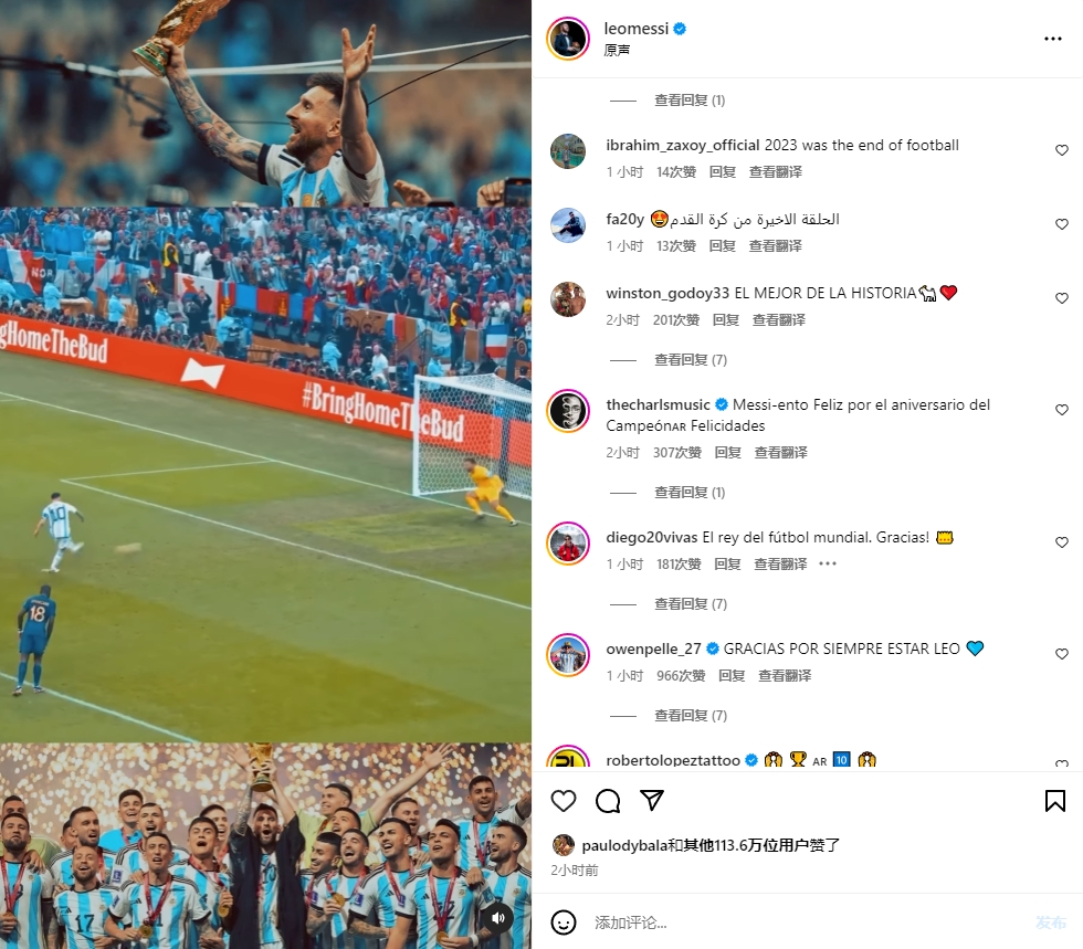 停不下来,梅开二度梅西又更新ins,仍是庆祝世界杯夺冠1周年