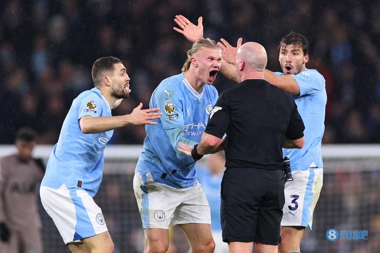 英足总官方:因对阵热刺时球员包围裁判,对曼城处以12万镑罚款